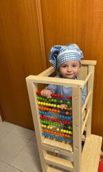 Učící věž jako takovou vnímám určitě jako velkého pomocníka a fakt je mi líto, že jsem si ji nepořídila u holek, spoustu věcí by třeba díky polohování stupínku zvládaly lépe a ušetřily bychom si spoustu vztekání v období "já sama". Konkrétně k naší věži Žirafa mám snad jen samá pozitiva."