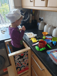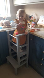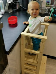 "Věž u nás hned zaujala čestné místo v kuchyni a díky tomu, že jsem si mohla zvolit barevnou kombinaci - každá věž je vyráběná přímo na míru, tak nám doma perfektně ladí. Popravdě bych si nemyslela, že věž využijí i 5 a 6 leté cácory, ale najednou jsem zjistila, že teď si v pohodě dosáhnou na talíře a hrníčky a že se jim pohodlně bude mýt nádobí ???? Viktorek se za pár dní taky otrkal a stal se z něj nadšený pomocník v kuchyni.